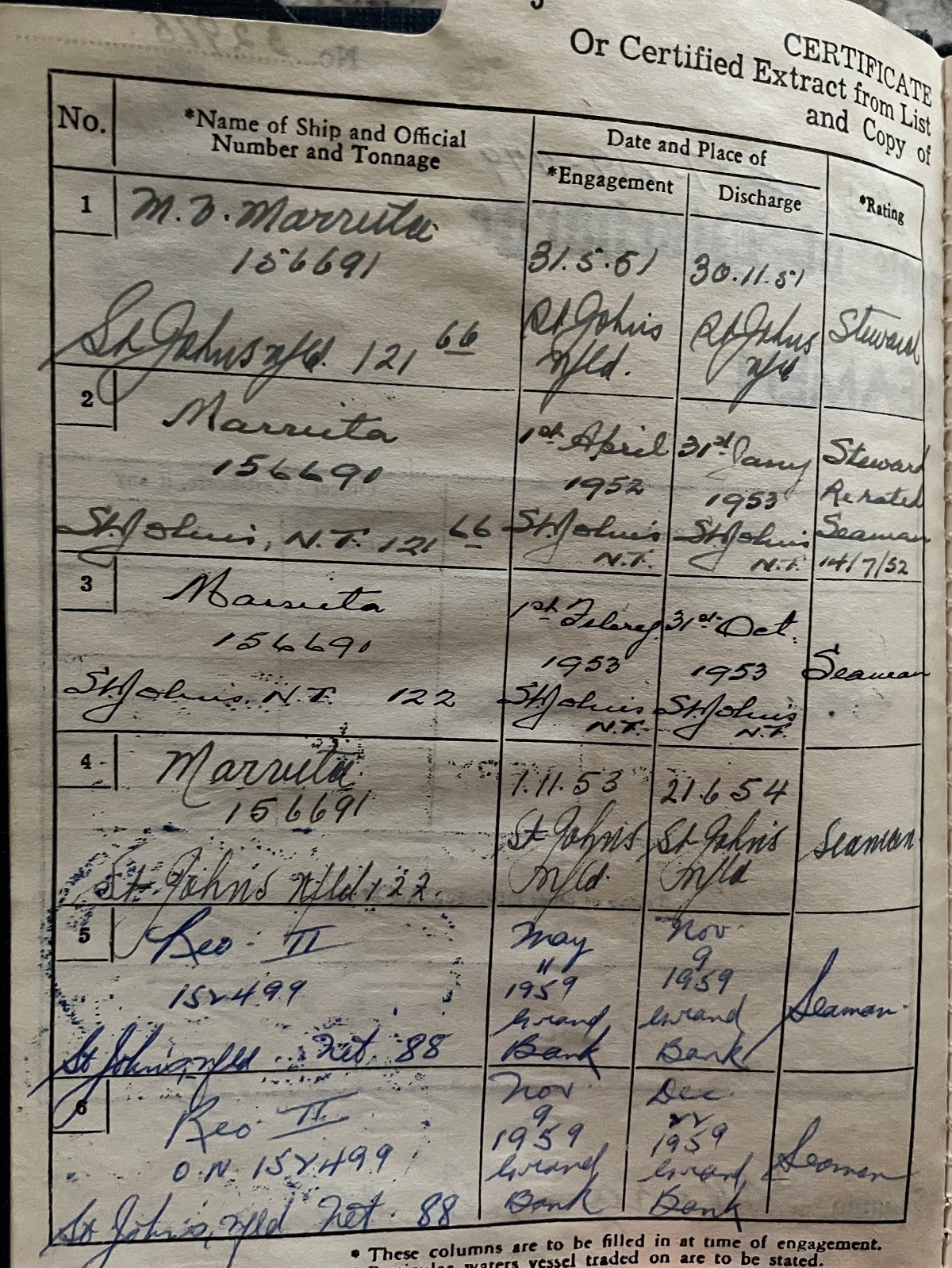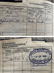 Ships served in: Department of Revenue Vessel MARVITA FREDA M. (Schooner)