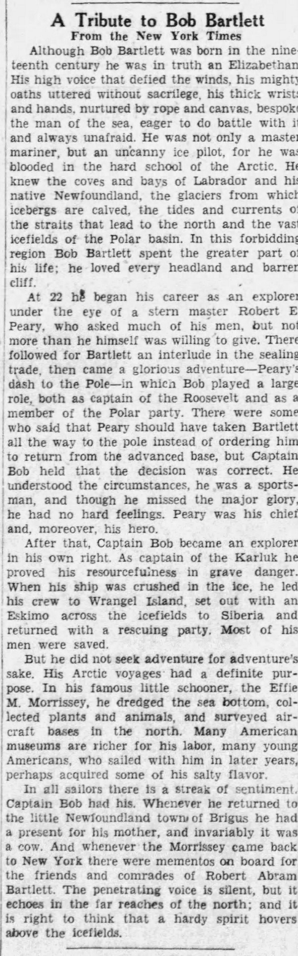 (RB01) Robert A. Bartlett on an unknown ship (RB02) Obituary for Robert A. Bartlett (RB03) A Tribute to Bob Bartlett from the New York Times