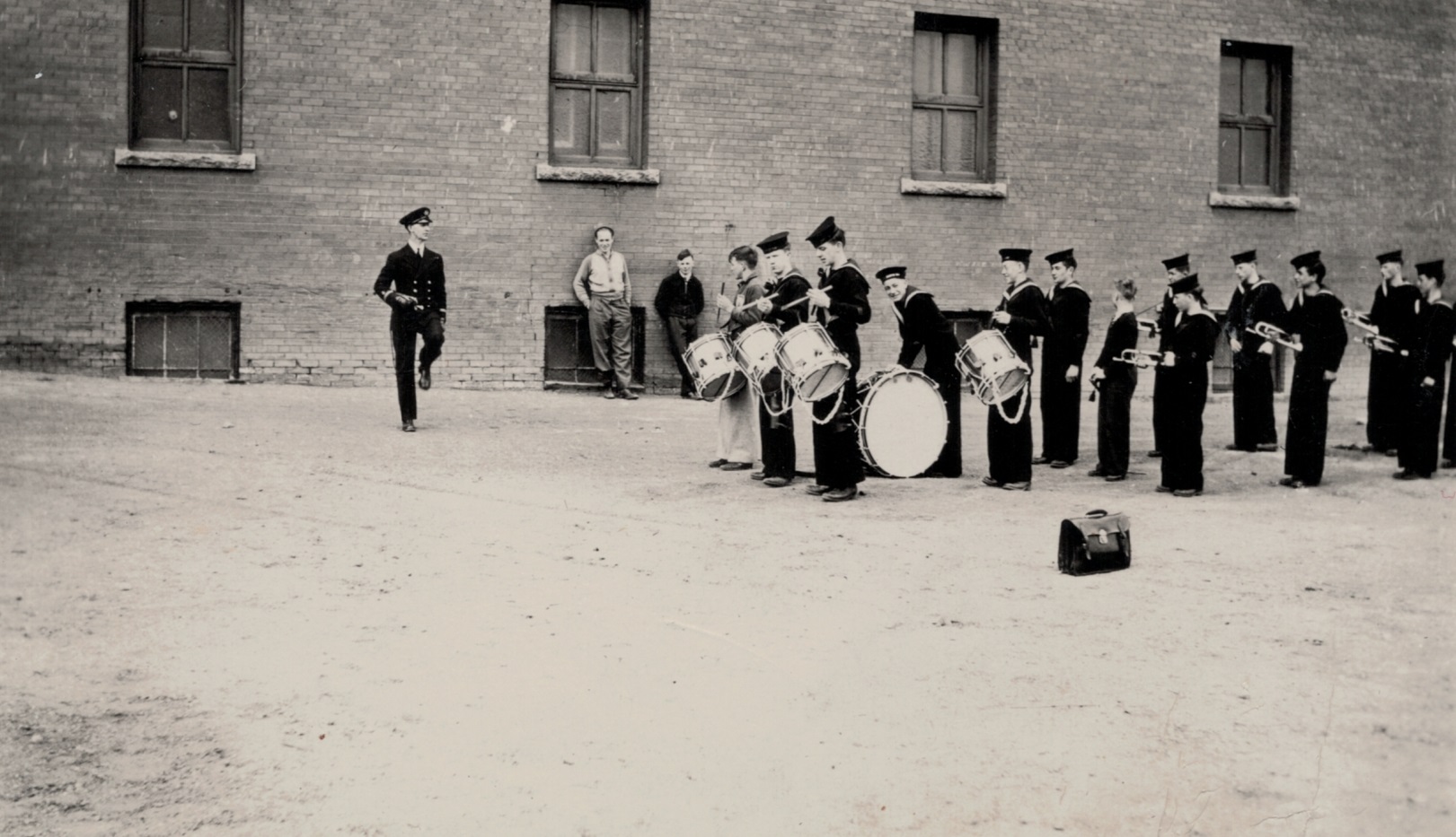 (GM01) George Mason with ?? (GM02) George Mason wearing an HMCS THE PAS jacket (GM03) Looking astern from HMCS THE PAS with convoy visible to the right side of the photo and a smoke marker in the ocean to the left (GM04) Appears to be a Sea Cadet band