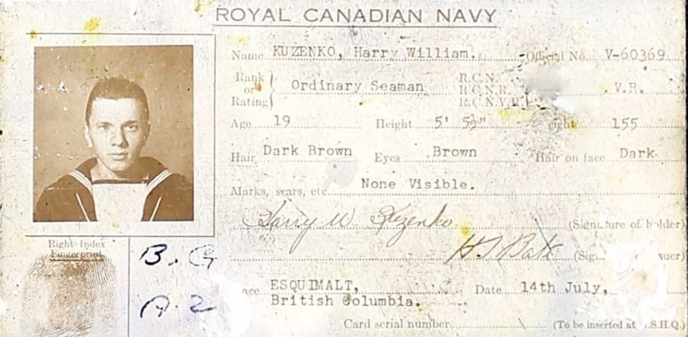 AB Harry William Kuzenko joined the RCNVR on April 22, 1944 and was a freight handler in civil life before he enlisted. He died when he was washed overboard from his ship HMCS SHEDIAC in heavy seas.