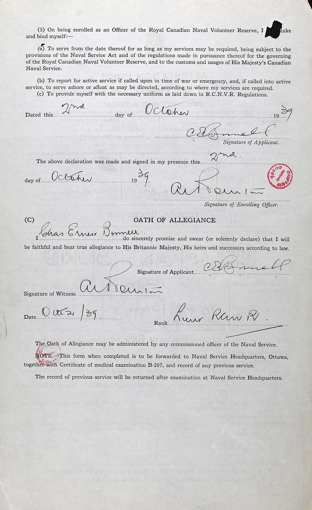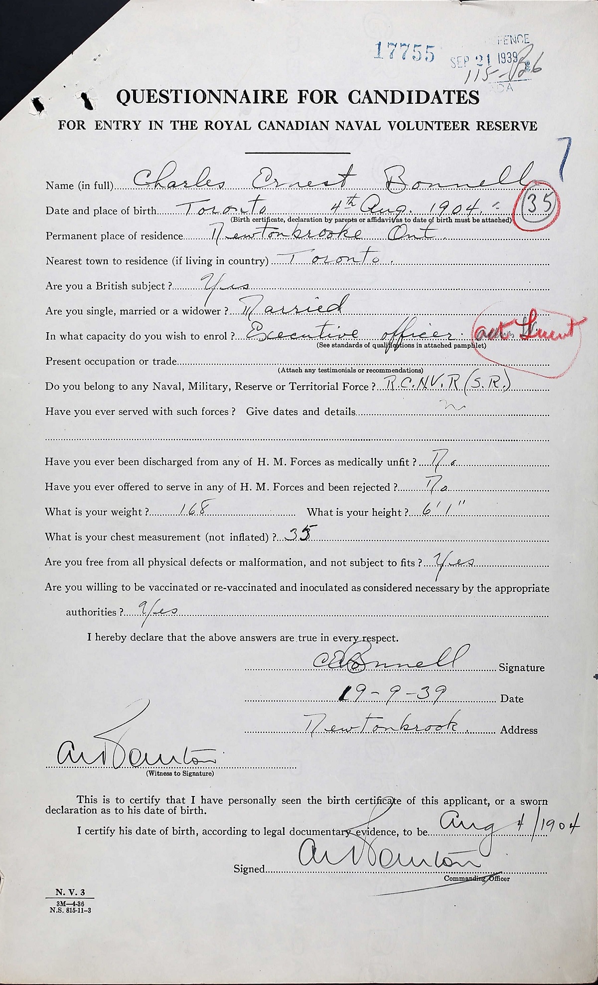 DIVISION TORONTO - 27 Sep 1939. Enlisted 02 Oct 1939. Commenced Active