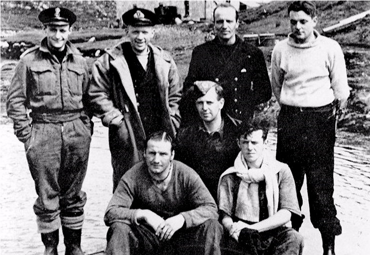 (CB11) FIRST CHARIOT TRAINING CLASS AT LOCH ERISORT Back row - L-R: Stoker Petty Officer C. E. T. Warren, Lieutenant D. C. Evans, Lieutenant C. E. Donnell, Lieutenant A. Moreton Front row: Corporal J. Allander, Sergeant D. Craig, Able Seaman J. Brown