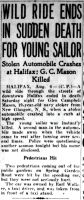 (GM01) Article on the death of Stoker Glenn Mason // Saint John Telegraph Journal 07 Aug 1944 // Courtesy of Operation Picture Me (GM02) Service File of Glenn Mason // Source: Library and Archives of Canada