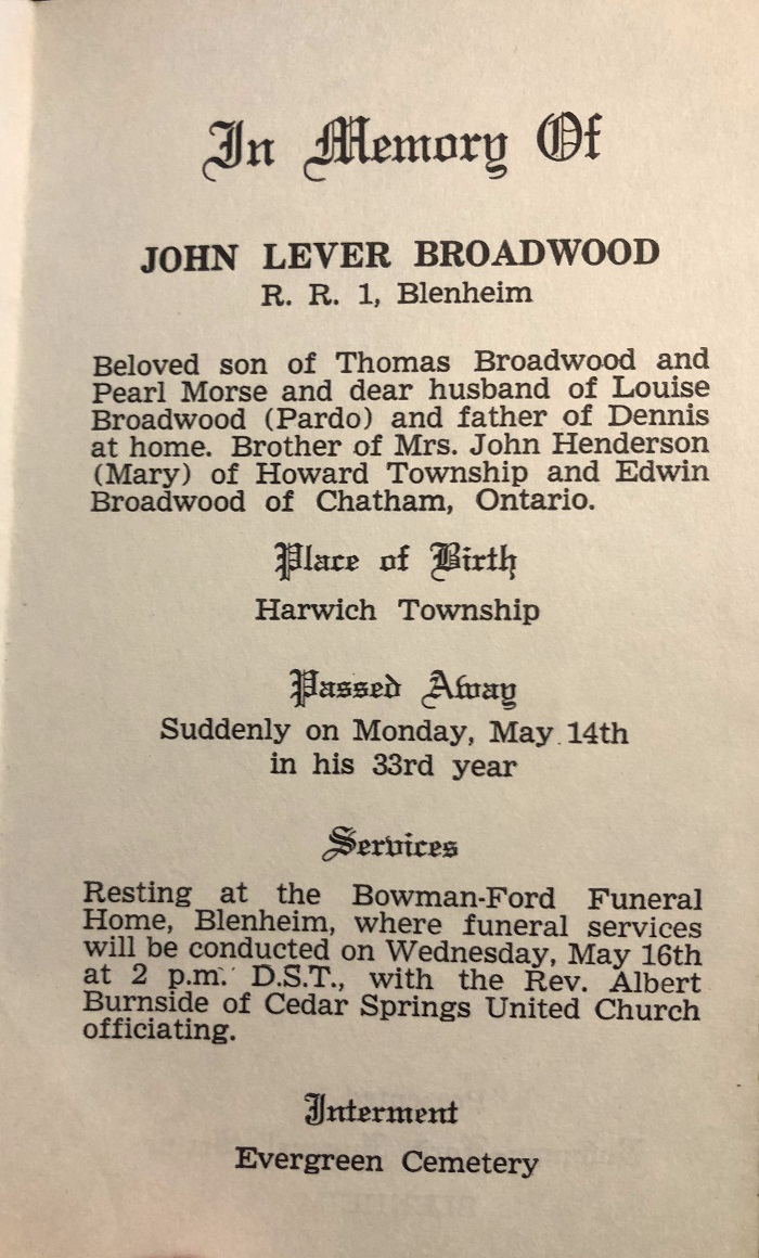 (JB01) Seaman John Broadwood (JB02) AA2c John Broadwood on his wedding day (JB03) Page from Memoriam pamphlet for John Broadwood