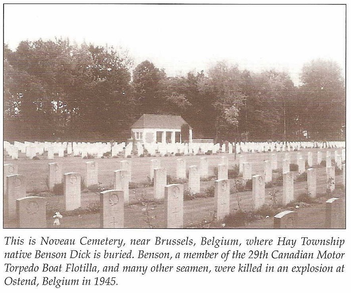 DICK, Benson Gordon, AB, V17800, RCNVR killed - 14 Feb 1945, MTB-485 - Son of Robinson H. and Lucy Dick, of Hensall, ON.