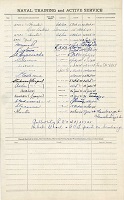 Ships served in: HMCS HUNTER - Enlisted 05 Mar 1943. Commenced Active Service 15 Mar 1943 HMCS YORK - Served in YORK 23 Mar 1943 - 20 Jul 1943 as an OS, RCNVR HMCS NONSUCH - Served in NONSUCH 21 Jul 1943 - 04 Nov 1943. Rated RA 5c, RCNVR 05 Nov 1943 HMCS SCOTIAN - Served in SCOTIAN 05 Jul 1944 - 12 Nov 1944. Rated A/RA 4c, RCNVR 05 Nov 1944 HMCS FERGUS - Served in FERGUS 22 Feb 1945 - 15 Jun 1945 as an A/RA 4c, RCNVR HMCS LAUZON - Served in LAUZON 23 Jun 1945 - 04 Oct 1945 as an A/RA 4c, RCNVR HMCS HUNTER - Drafted to HUNTER 22 Nov 1945. Demobilized 07 Jan 1946 as an A/RA 4c, RCNVR