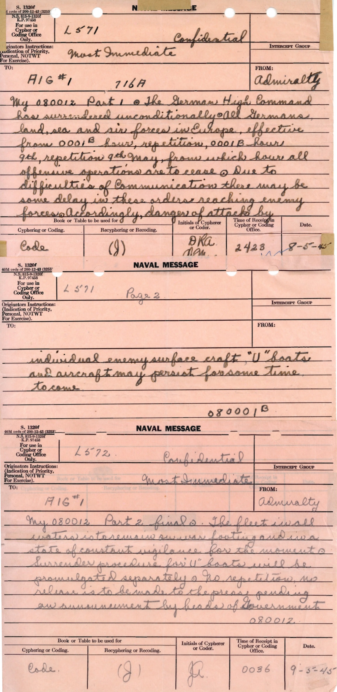 (JG01) Portrait of RA John Goodier (JG02) Certificate of Service - page 2 - Training and Active Service (JG03) Message announcing the surrender of German Forces