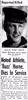 (LH01-LH02) Certificate of Service - pages 1 and 2 (LH03) Report of Death (LH04) Letter to AB Horne's mother (LH05) Newspaper article on the death of AB Horne