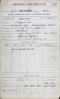 (OR01-OR02) Certificate of Service - pages 1 and 2 (OR03) Commanding Officers report in the death of ERA Oliver (OR04) Letter to ERA Oliver's widow