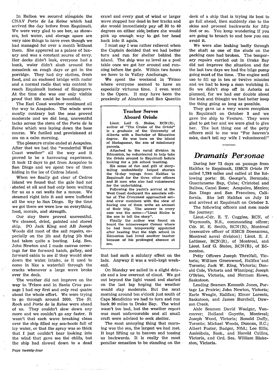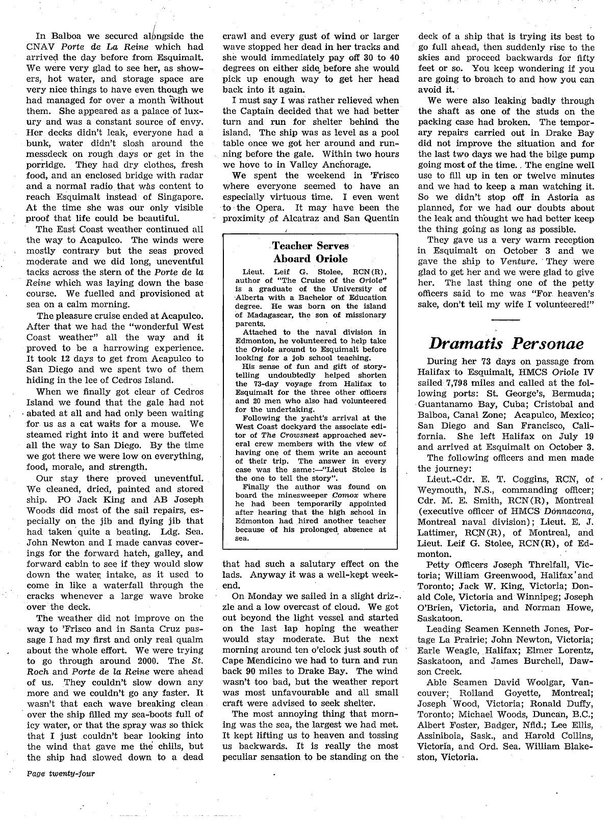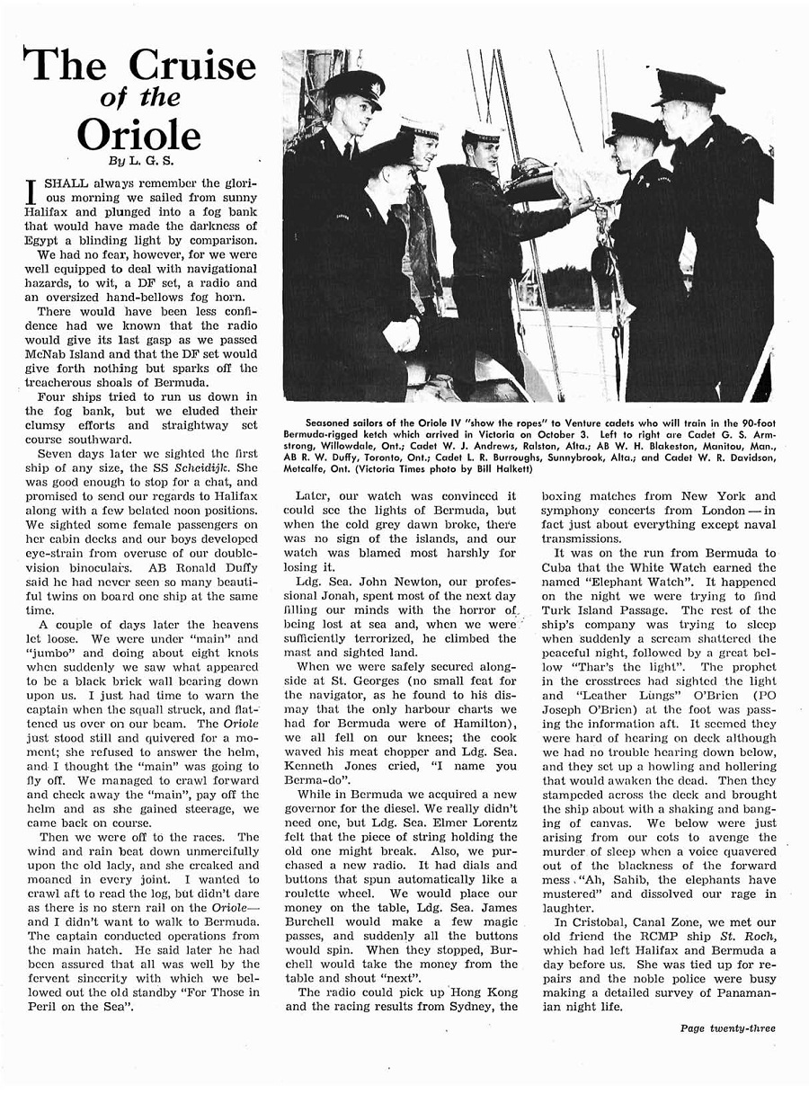 Ships served in: HMCS ORIOLE - Served in ORIOLE for his coast transfer from Halifax to Esquimalt in Jul-Oct 1954