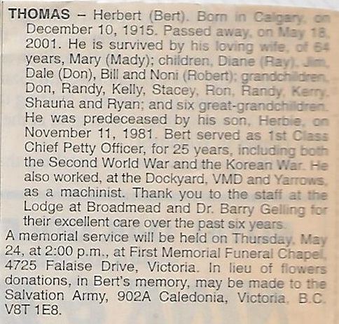 Served in the RCN 13 Sep 1937 - 30 Nov 1961