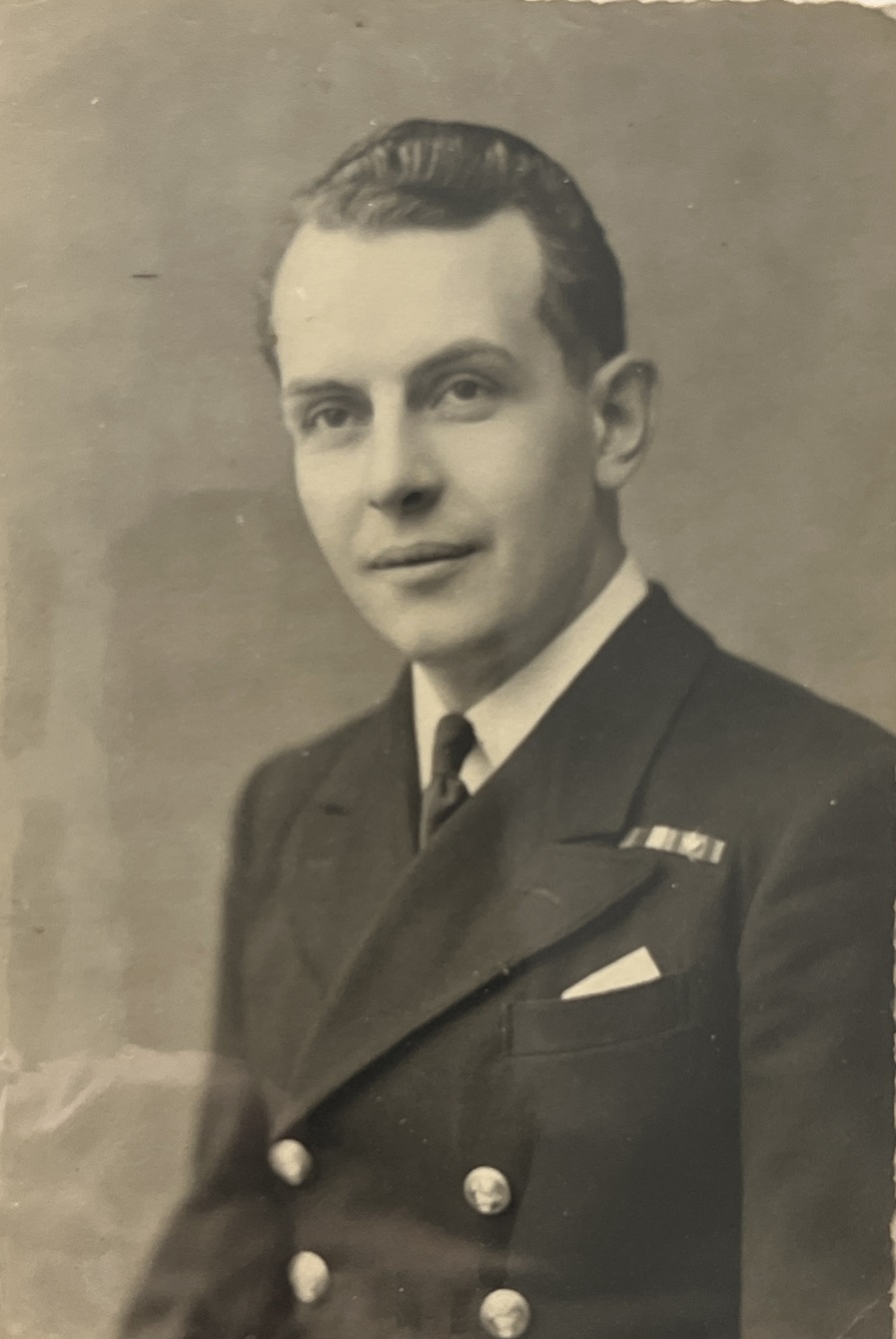 He was one of the 150 Canadian Raleighites selected for officer training by Lt. Cmdr. E.A. Brock, and sailed for England in September 1940 to complete training. His background and training in communications with Signals was noted, and after training at HMS KING ALFRED and service aboard the HMS KENYA, he was commissioned a “tempy” Lieutenant in the R.C.N.V.R. and sent to Scotland to HMS NIMROD and HMS OSPREY for anti-submarine training. For the remainder of the war, he served on the seas in several ships including the HMS ST LOMAN and HMS EXE on convoy duty as an A/S officer, interspersed with appointments at shore installations including HMS OSPREY in Scotland and HMS ASSEGAI in South Africa, installing ASDIC system in ships of the British, Canadian and US Navies and training others in its use.