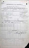 Ships served in: OTTAWA DIVISION RCNVR - Enlisted 29 Mar 1938 * Discharged 31 Jan 1939 - unable to attend drills OTTAWA DIVISION RCNVR - Enlisted 08 Sep 1939. Commenced Active Service 25 Sep 1939 HMCS ST LAURENT - Drafted to ST LAURENT 04 Apr 1940 as an AB, RCNVR