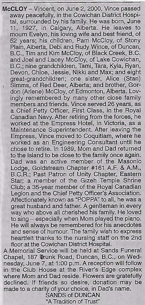 Served in the navy 16 Apr 1945 - 30 Dec 1970