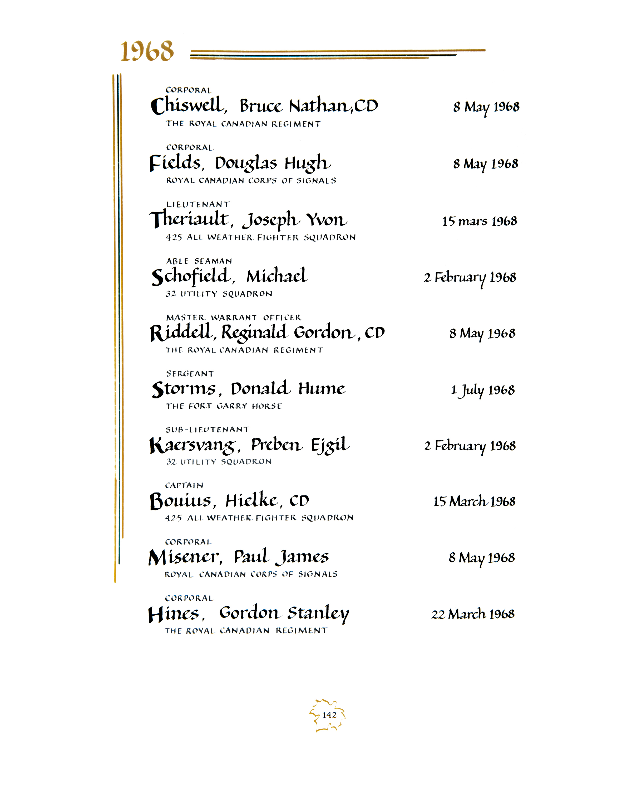 KAERSVANG, Preben Ejgil, SLt, O-37686, RCN, died - 02 Feb 1968, 32 UTILITY SQUADRON - Son of Borge Villy and Olga (nee Jakobsen) Kaersvang of Ingersoll, ON. Brother of Gunner, Ole, Ruth, Inger, Hanne Kaersvang. He enlisted in the RCN 10 Sep 1961 in Centralia, ON.