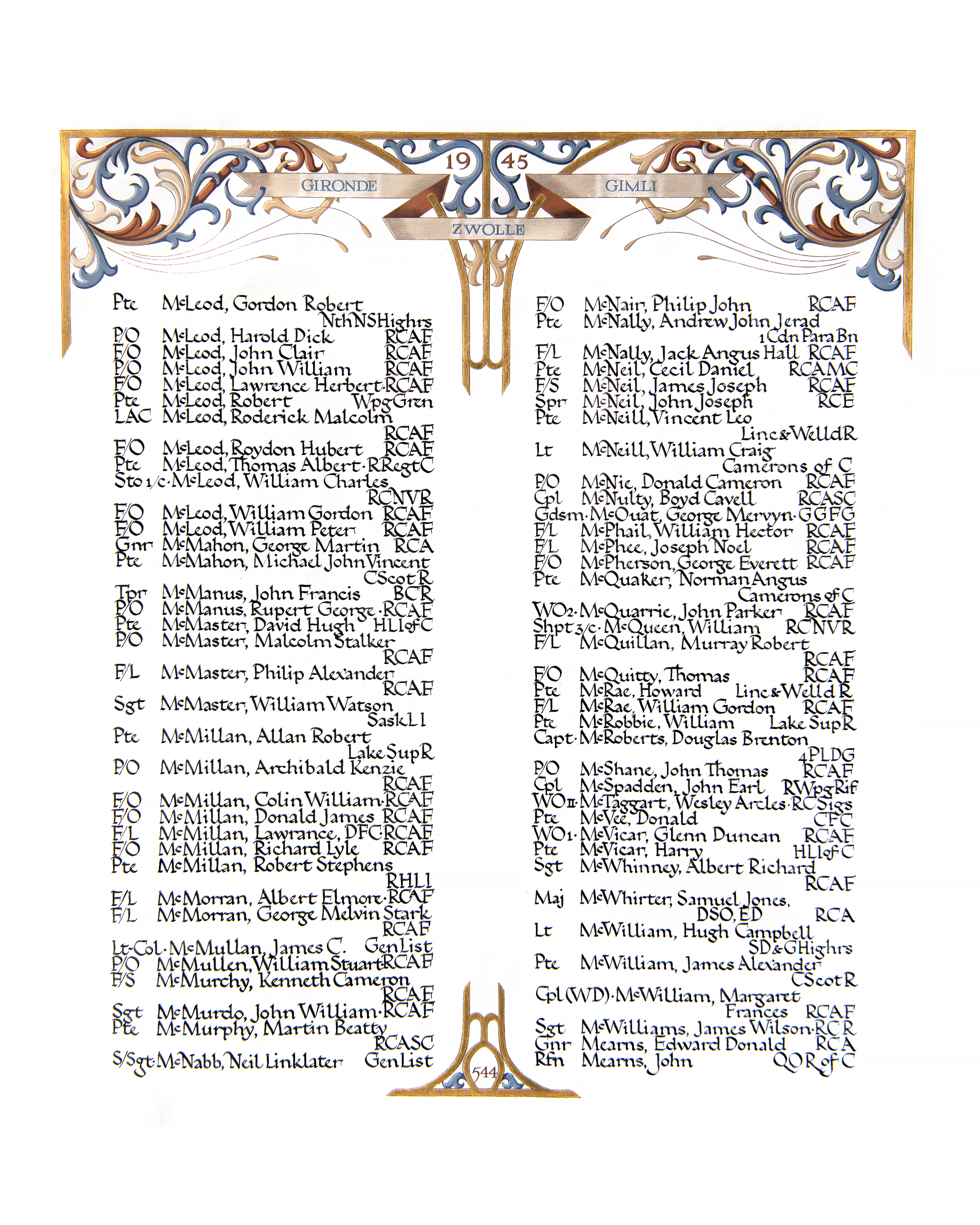 (WM01) I.D. card for Stoker McLeod (WM02-WM03) Certificate of Service - pages 1 and 2 (WM04) Report of Death (WM05) Headstone for Stoker McLeod in the Mount Royal Cemetery, Montréal, QC.