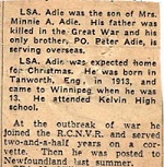 ADIE, William Charles, Leading Supply Assistant, V9681, RCNVR, killed - 12 Dec 1942, HMCS AVALON - Son of William A. Adie and Minnie A. Adie, of Winnipeg, Manitoba.