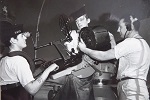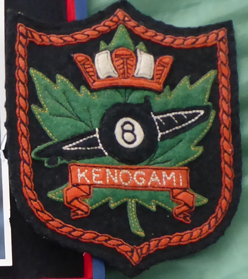 (...) HMCS KENOGAMI K125 (...) HMCS KENOGAMI jacket patch - based on the ship's gunshield art (...) Unknown sailors by HMCS KENOGAMI'S gun. Note the gunshield art (...) Frank (centre) with shipmates on HMCS KENOGAMI K125