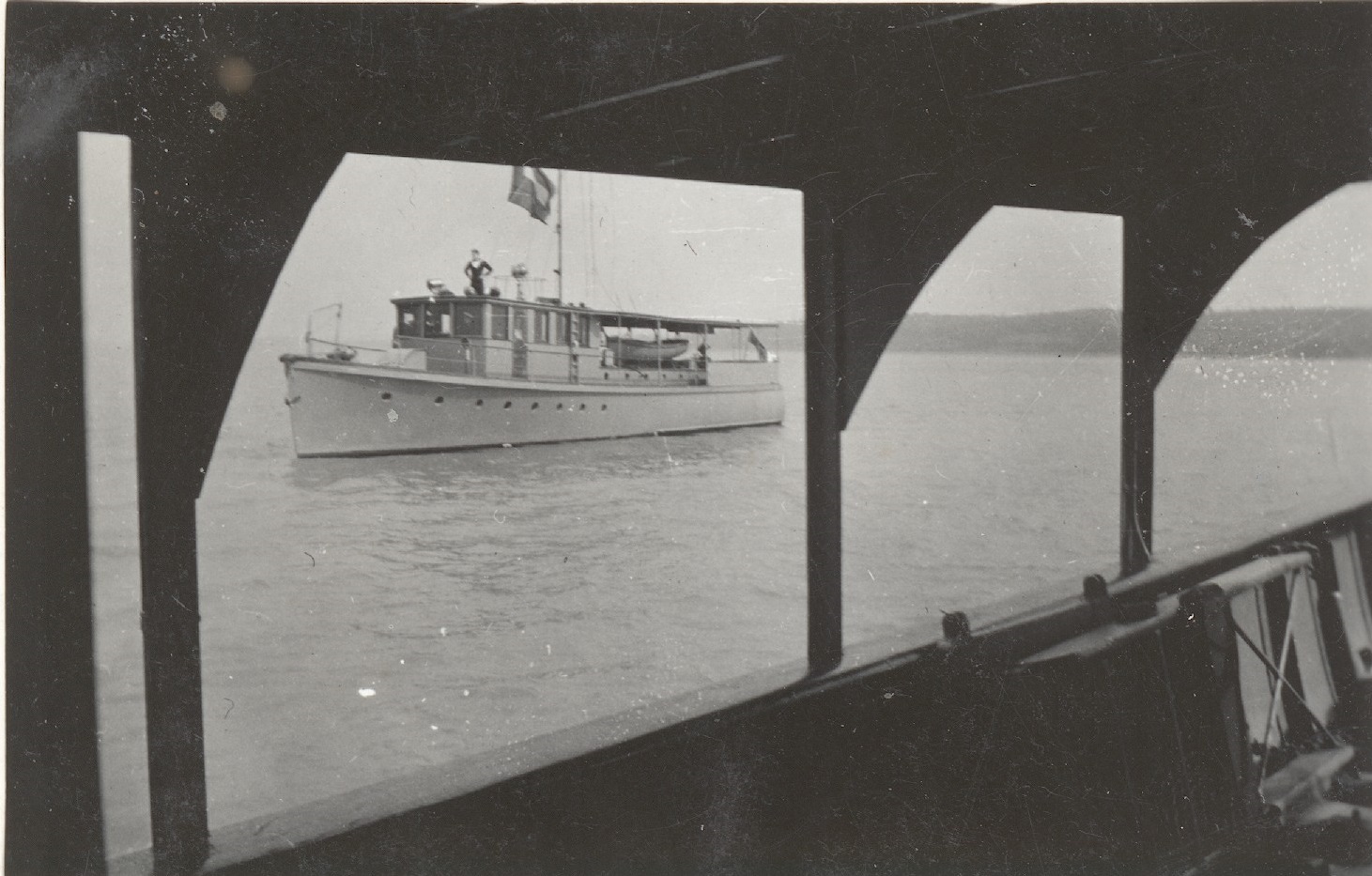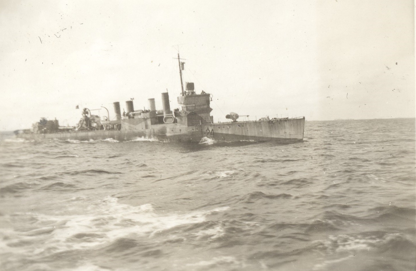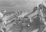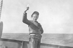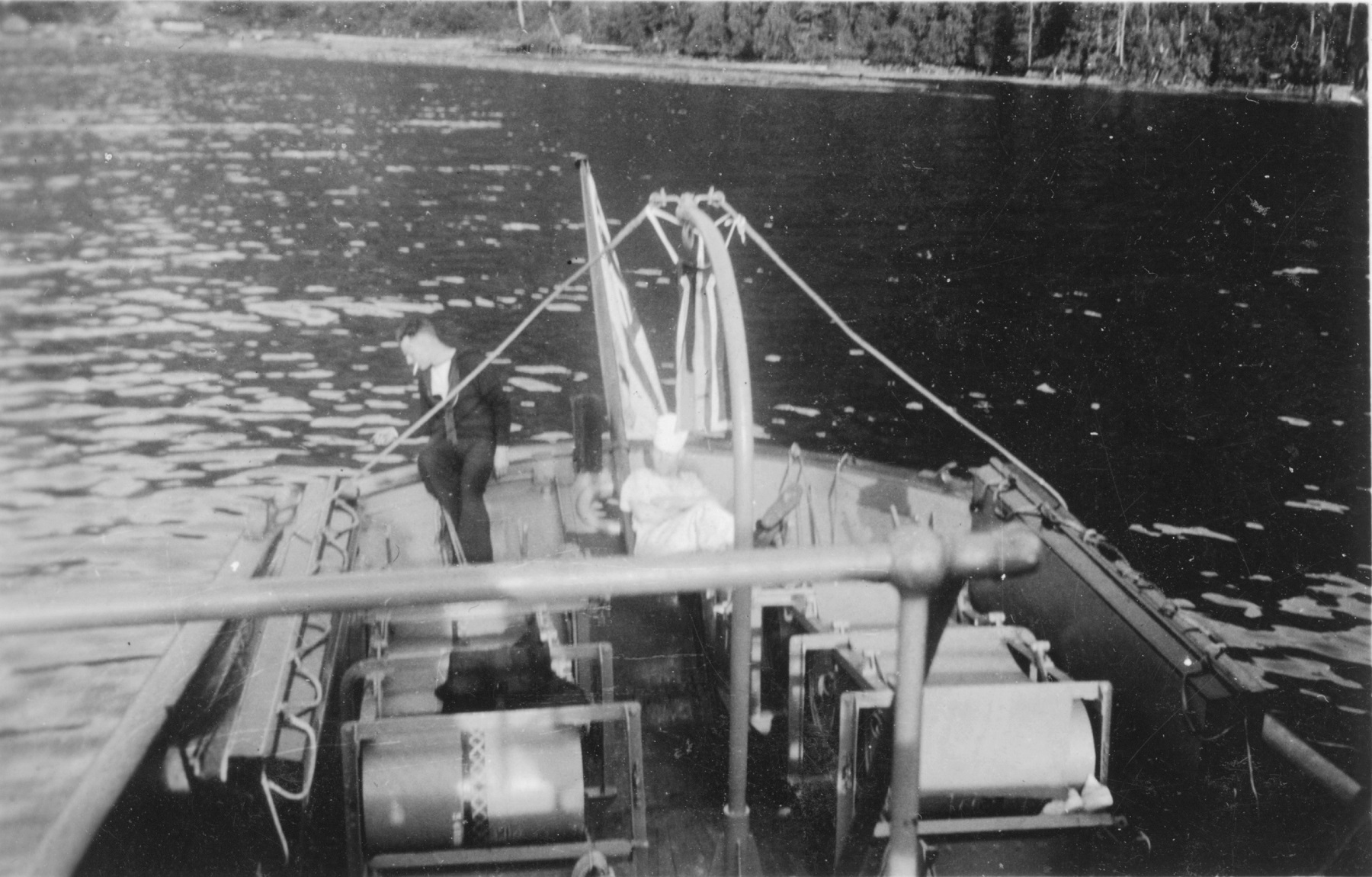 (WD33) Sailors relaxing on the quarterdeck of HMCS WOLF (WD34) Unknown sailor by the depth charge rails of HMCS WOLF (WD35) Ship's boat approaching HMCS WOLF