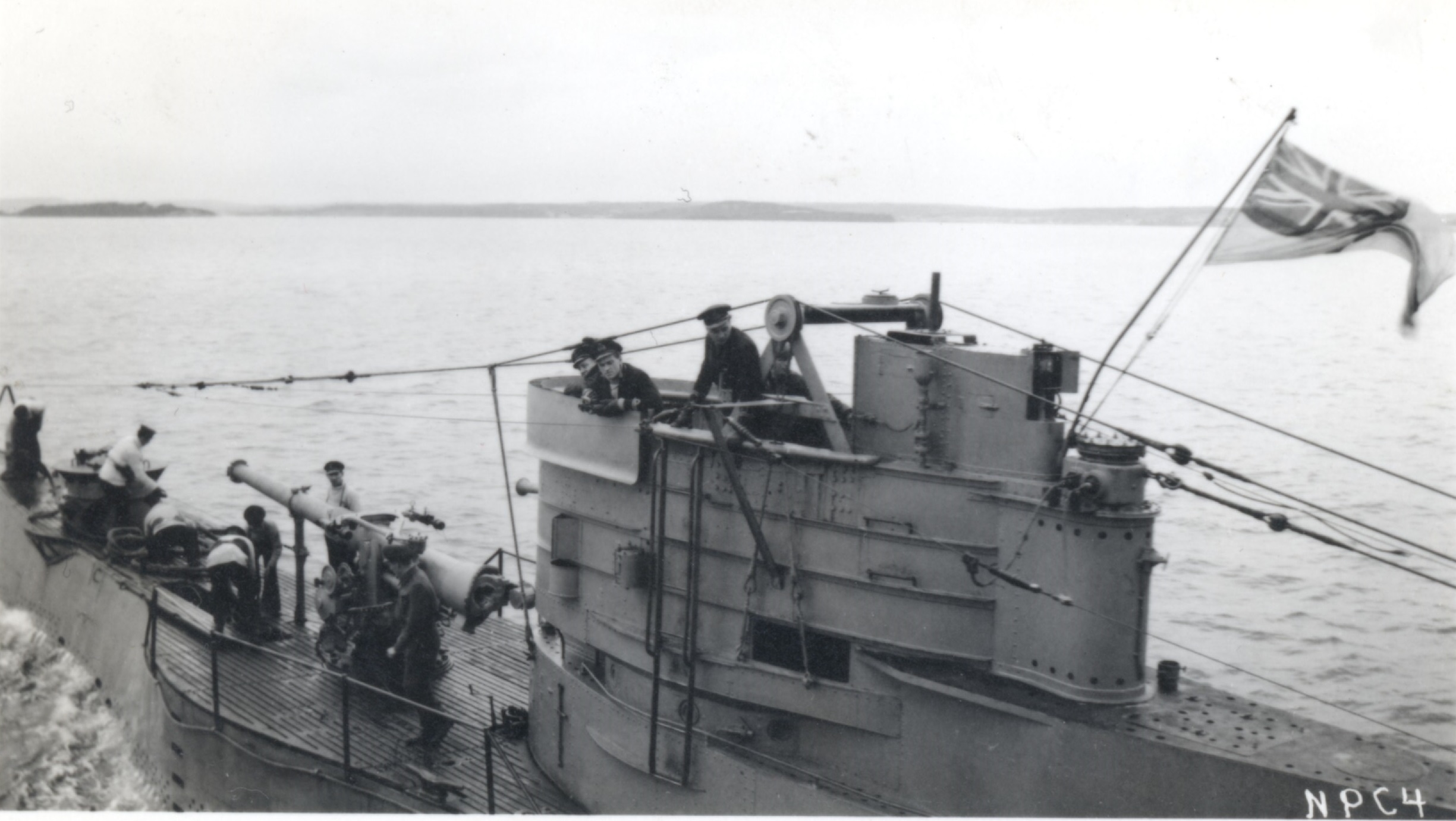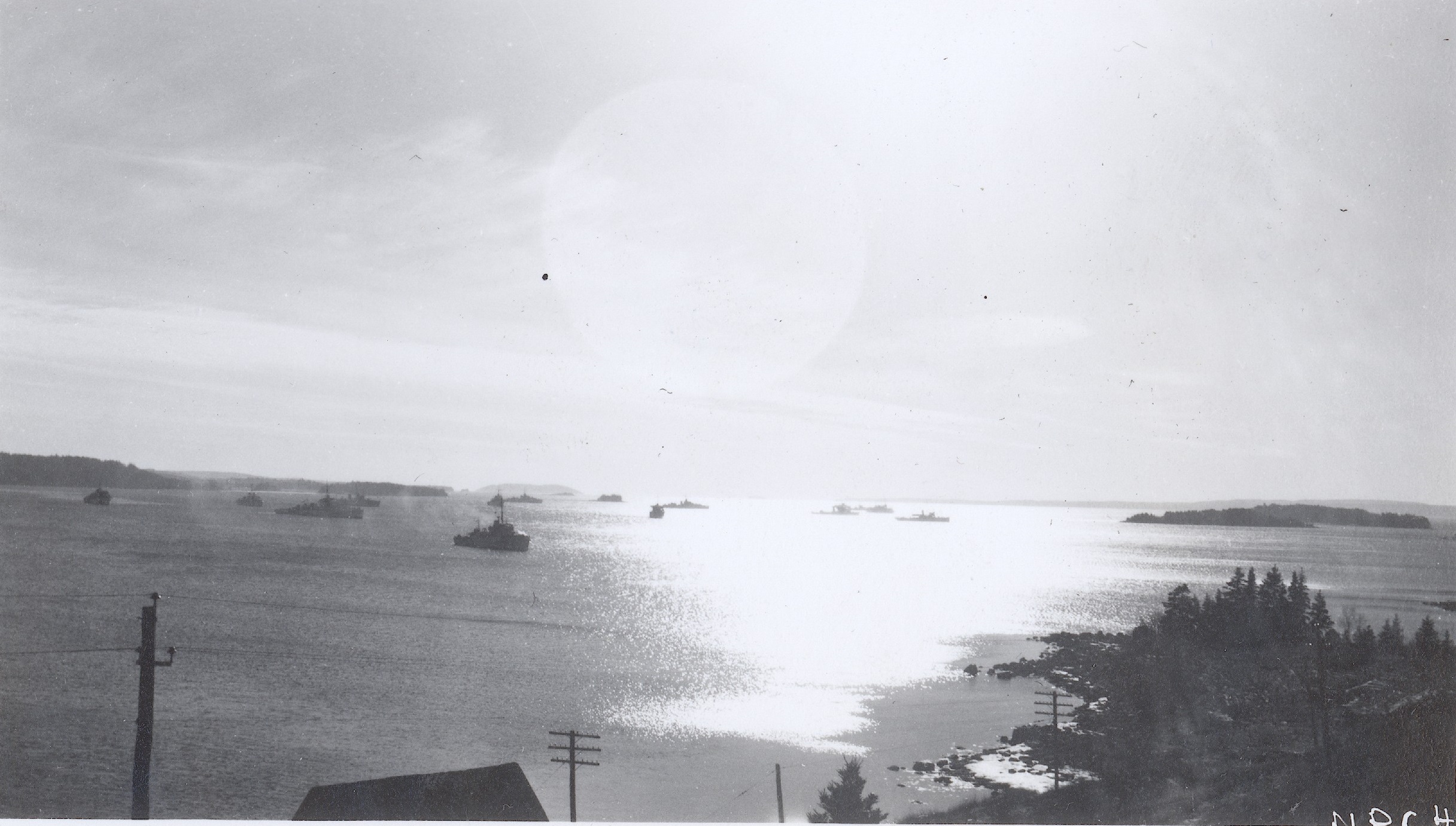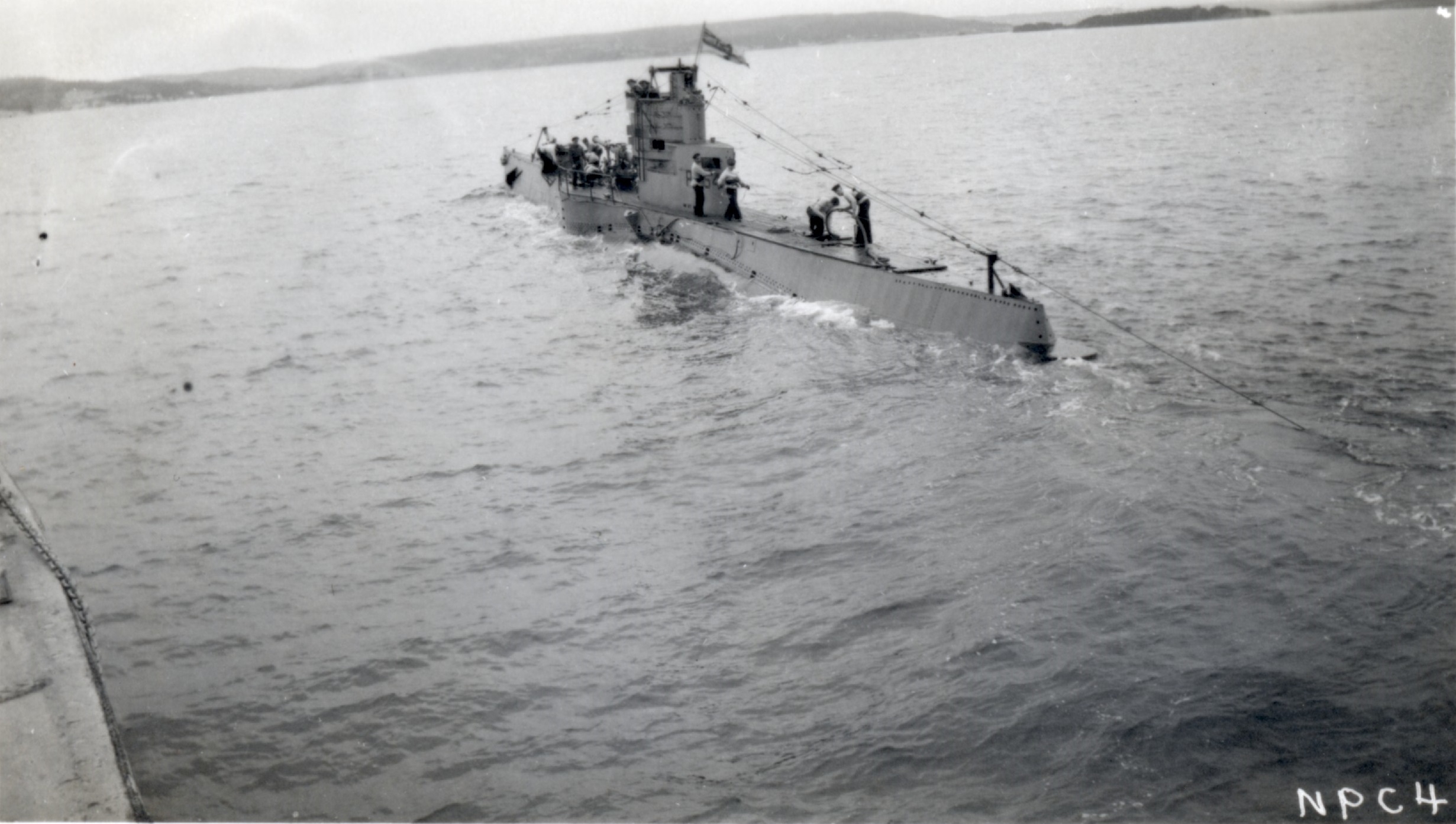 (WD12) Unidentified allied submarine on the right hand side of the island. Possibly in the approaches to Halifax Harbour