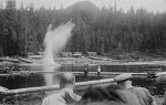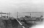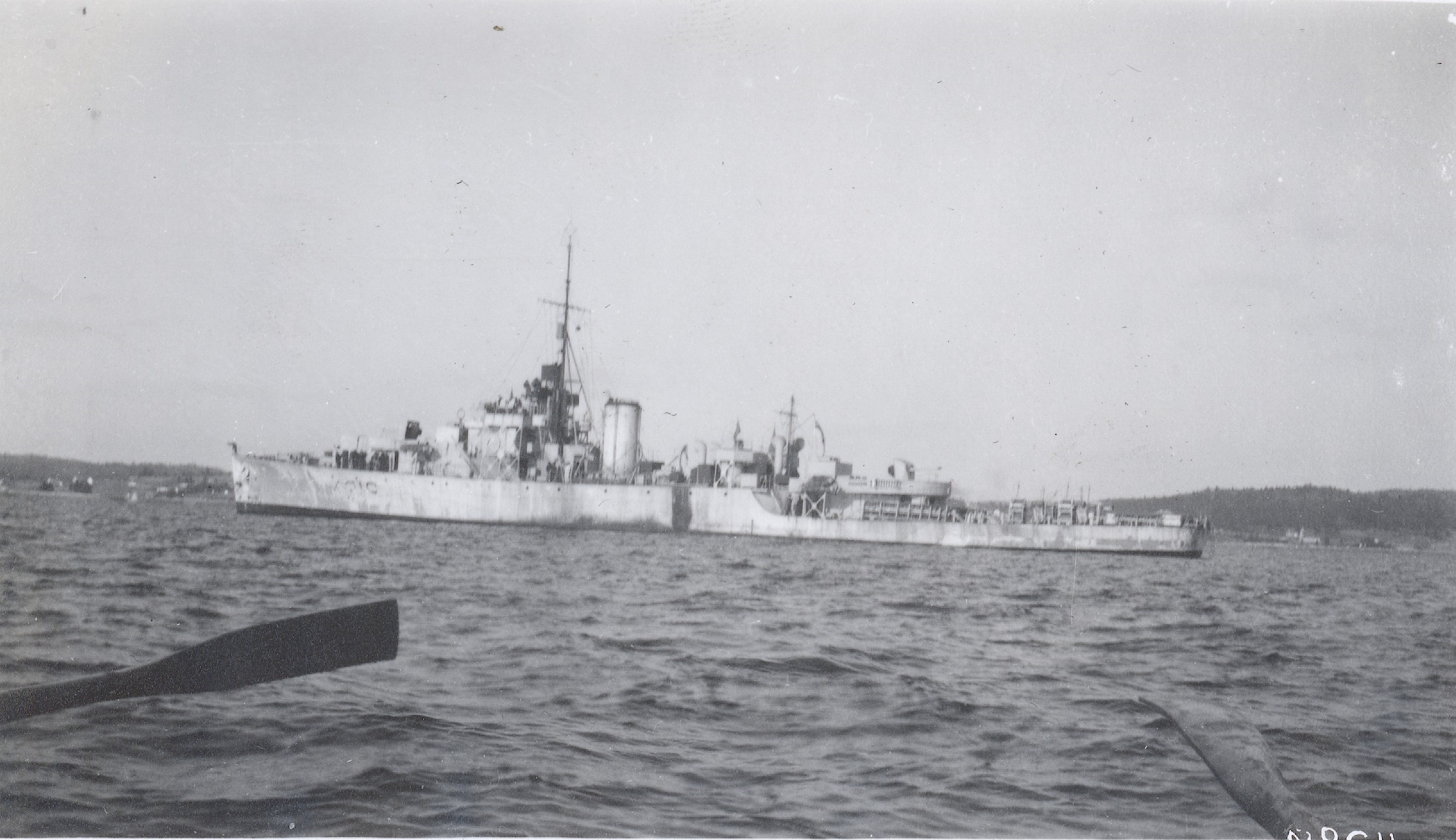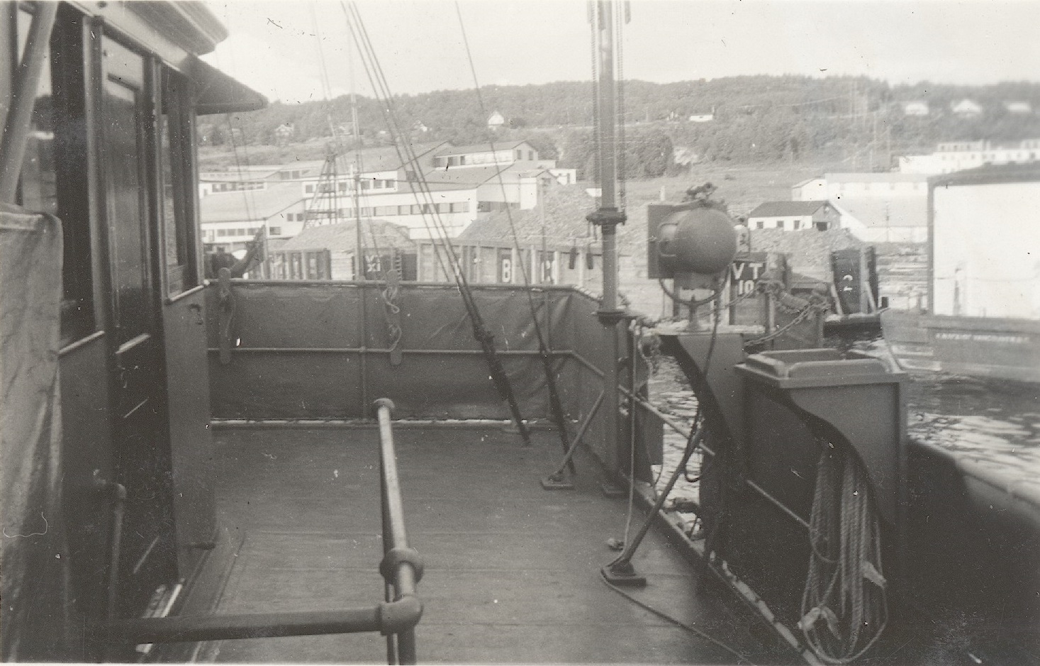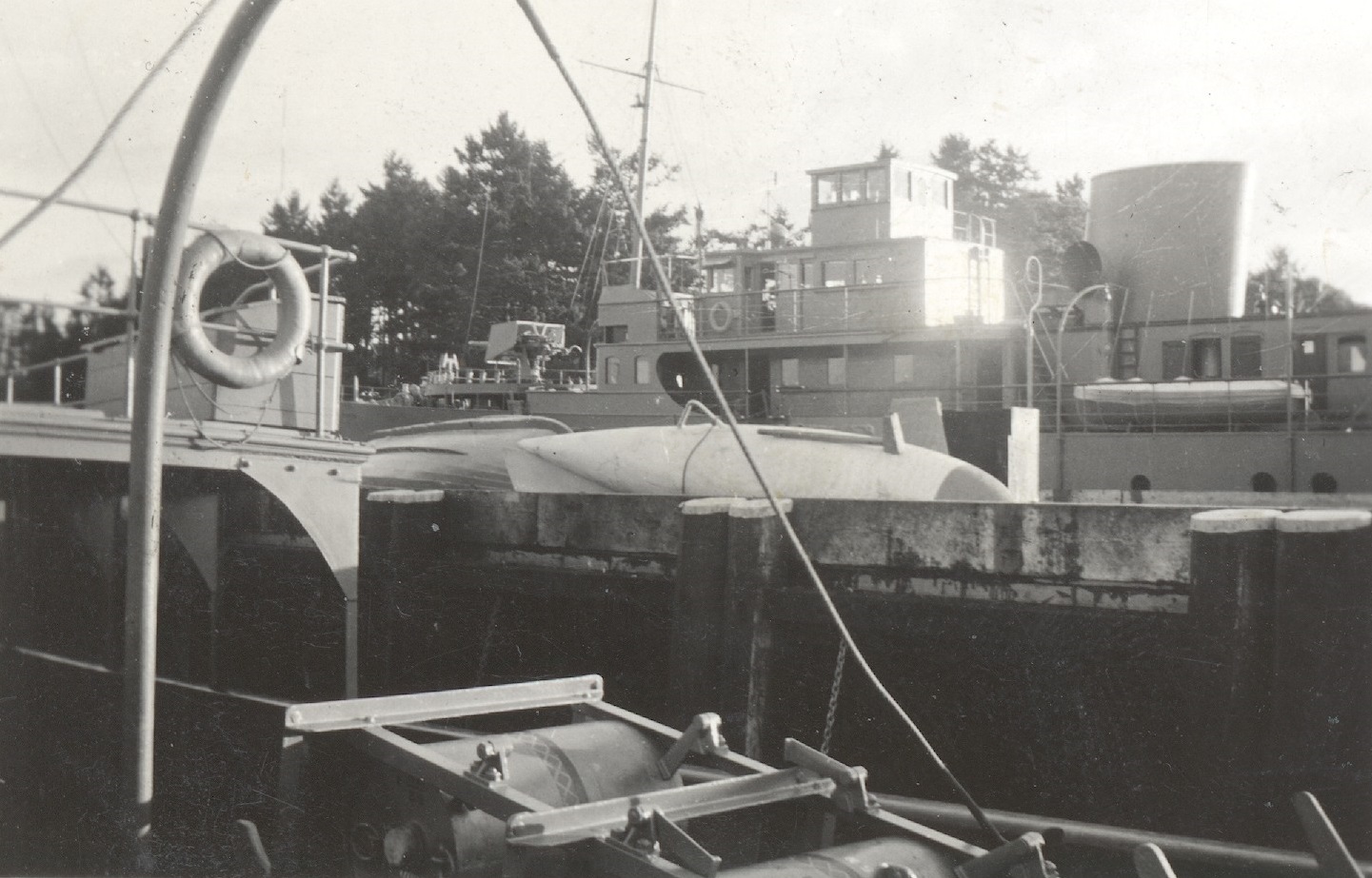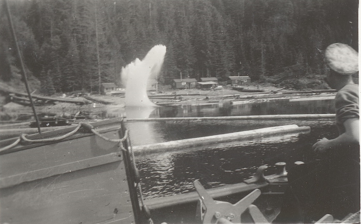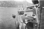(WD18) HMCS WOLF making a brief call at Sechelt, BC enroute from Vancouver to Halfmoon Bay. Photo was taken at approximately 1630 on Thursday, May 29, 1941. Wolf did not stay very long. She tied up alongside at 1644 and departed 1738. (WD19) Saw mill at Powell River, BC seen from the bridge of HMCS WOLF. WOLF docked at Powell River at 1005 on June 1, 1941 and departed at 0802 June 2, 1942. Her previous port of call was Stillwater (apparently there was a logging camp there) and was then bound for Redonda Bay (WD20-WD21) North side of Tourner Island near Port McNeill. The splash comes from logs descending a flume on the left of the photo. HMCS WOLF made a port of call to PortMcNeill on 20 Jun 1941. (WD22) HMCS WOLF alongside at an unknown location