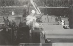 (WD115) Unknown evolution on HMCS WALLACEBURG J336 The crew seem pretty relaxed - though all are wearing life jackets and carrying their gas masks. One sailor by the depth charge rails looks very fatigued (WD116) Two sailors wearing gas masks sitting at after gun on HMCS WALLACEBURG J336 (WD117) Three sailors by the after gun of HMCS WALLACEBURG J336 - one looks like he is ready to hit the beach. WALLACEBURG appears to be moored alongside an island in the harbour (WD118) Robust Class dockyard paddle tug HMS SANDBOY W12 passing astern of HMCS WALLACEBURG J336