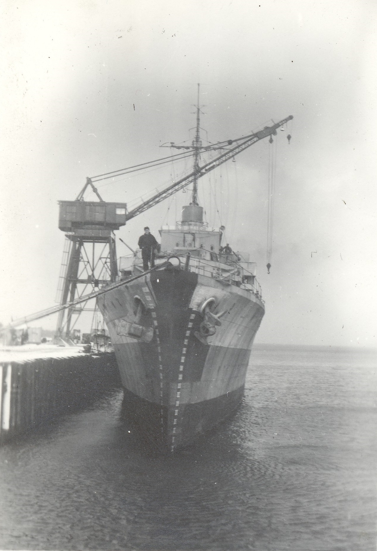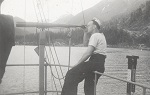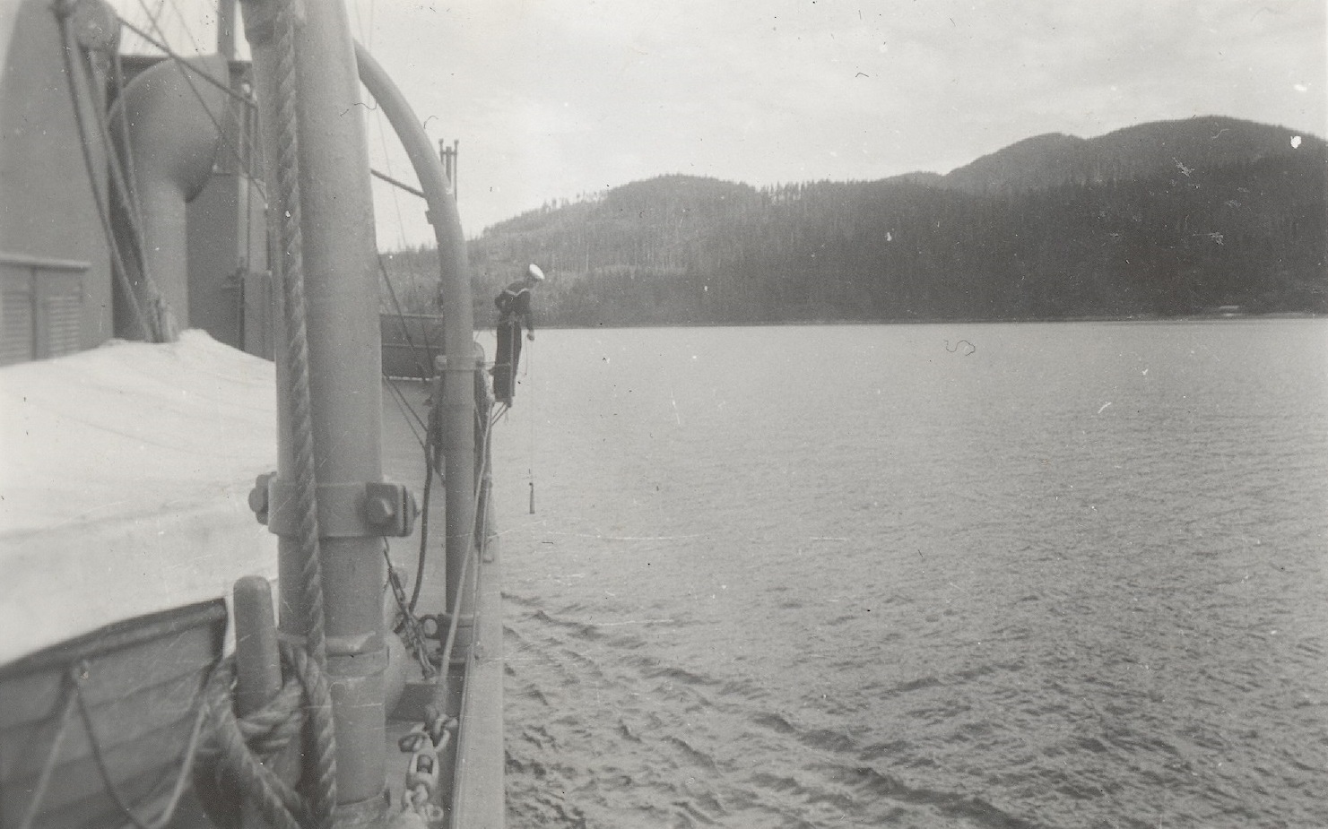 (WD23) Mountain believed to be on Vancouver Island - possibly Golden Hinde (WD24) Unknown sailor on HMCS WOLF (WD25) Sailors below the deck overhang near the quarterdeck of HMCS WOLF (WD26) Unknown sailor on HMCS WOLF. This photo is taken at the same location as photo WD27 where SANS PEUR is across the jetty from WOLF (WD27) HMCS SANS PEUR seen across the jetty from HMCS WOLF