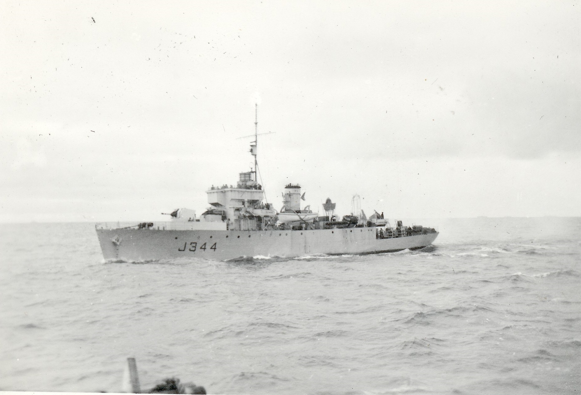 (WD87) John Walsh onboard HMCS WALLACEBURG J336 with ship's mascot (WD88) Smith onboard HMCS WALLACEBURG J336 (WD89) HMCS WALLACEBURG J336 digs in and shipping water over her bow (WD90) Unknown sailor by the signal lamp of HMCS WALLACEBURG J336 (WD91) Three members of the gun's crew at the forward gun mount on HMCS WALLACEBURG K336