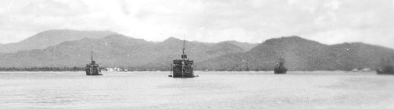 (WD36) HMCS TIMMINS, HMCS QUESNEL, HMCS EDMUNDSTON and HMCS NEW WESTMINSTER at anchor off Mexico during the transfer from Esquimalt to Halifax 13 Sep 1942 - 13 Oct 1942. Photo taken from HMCS DUNDAS K229