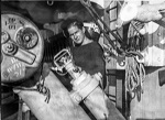 (WD82) HMCS WALLACEBURG J336 transferring (receiving) depth charges at sea (WD83) Convoy seen from HMCS WALLACEBURG J336 (WD84) Looking aft down the port side of HMCS WALLACEBURG J336. Unknown sailor looking up at the camera (WD85) Stoker Petty Officer G.A. Jones in the boiler room - believed to be on HMCS WALLACEBURG J336 (WD86) Unknown sailor in the engine room - believed to be on HMCS WALLACEBURG J336