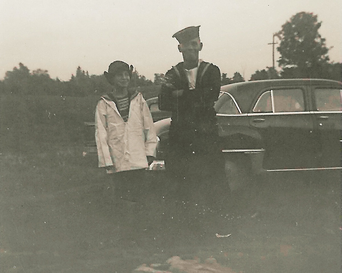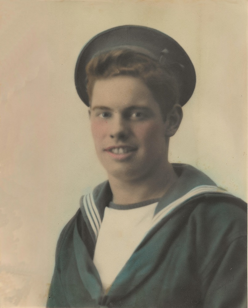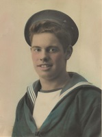 (JI01) Portrait of Ordinary Seaman John Inglis taken for his mother (JI02) Christmas greetings sent by John Inglis to his sister circa 1943 (JI03) Photo sent with Christmas Ditty Bag from Bloomfield Ontario to John Inglis (JI04) John Inglis on leave - possibly in Halifax (JI05) John Inglis with young friend making sure his uniform still fits circa 1960