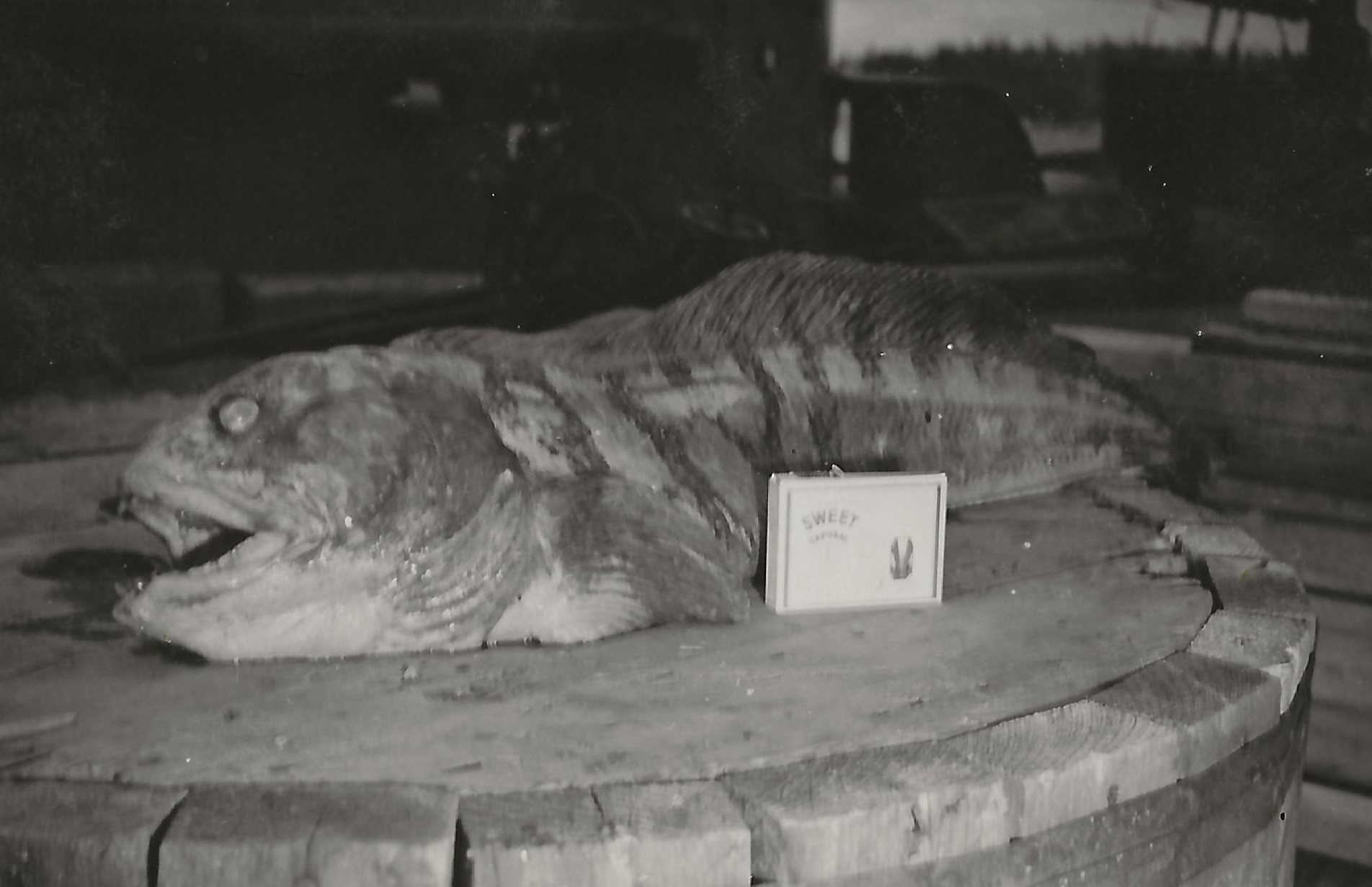 (JI11) Atlantic wolffish (aka Atlantic catfish or wolf eel) with a sweep Caparal tin for size comparison