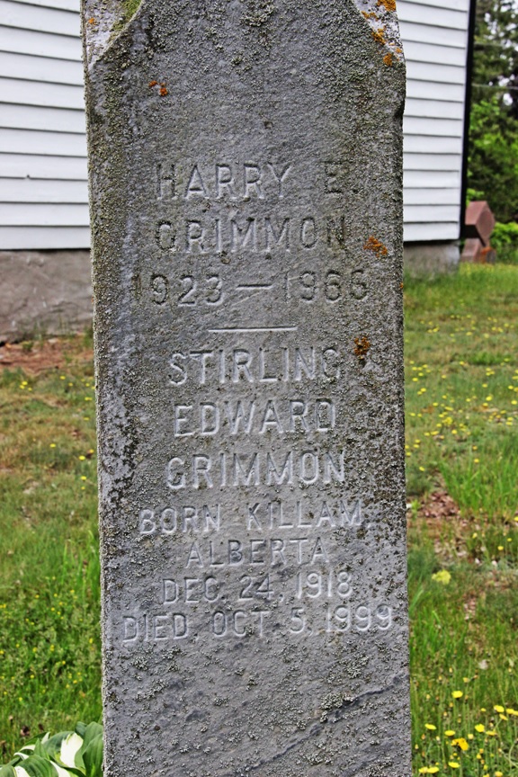 Headstone for Harry Grimmon and his brother Stirling in the Black Creek Cemetery, South Marysburgh, Prince Edward County, Ontario