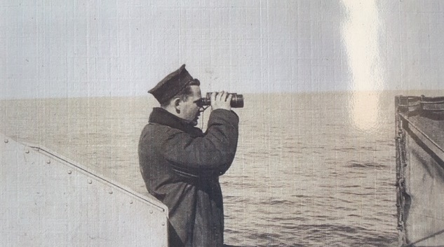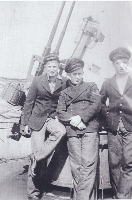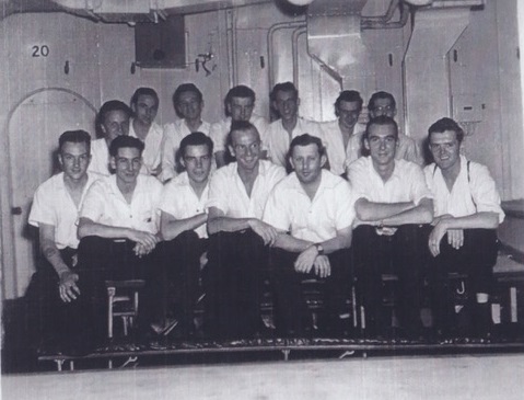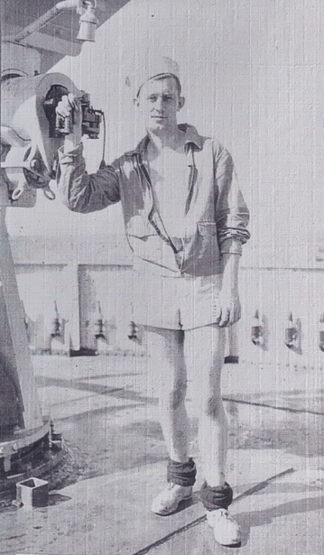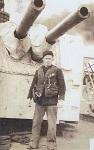 (JH06) John Huber on watch as lookout on unknown ship (JH07) Watts, John Huber and Bligh on unknown ship (JH08) John Huber in front of the gun turret on an unknown frigate (JH09) John Huber in Bermuda - 1944 (JH10) L/Writer John Huber, front, 3rd from right and shipmates in Bermuda - Apr/May 1944