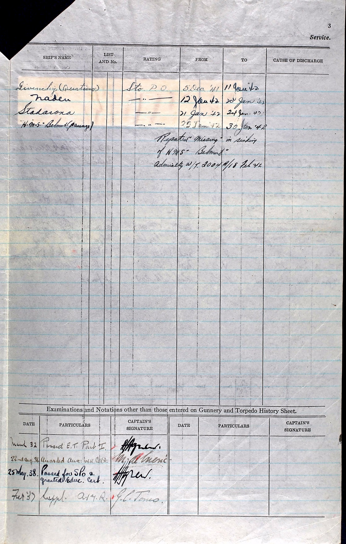 Sto PO MacDonald was on board HMS Belmont for passage and died when she was torpedoed and sunk on 31 Jan 1942.
