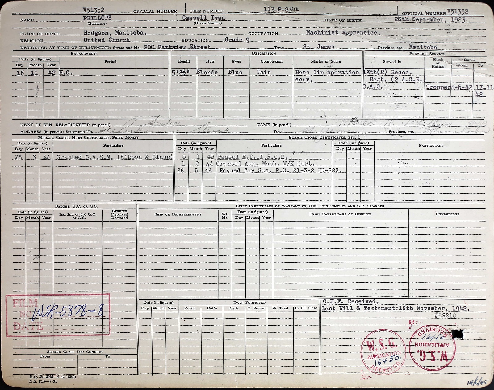PHILLIPS, Caswell Ivan, L/Sto, V51352, RCNVR, died - 02 Apr 1945, HMCS UGANDA - Son of Son of Caswell William and Mary Frances Phillips; brother of Merle D. Skimming, of St. James, Manitoba.