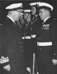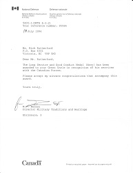 (AR07) Chief Petty Officer Lance Rutherford being addressed by an unknown Rear-Admiral during divisions at HMCS MALAHAT. DND / RCN photo neg # 44598 (AR08) Posthumous award of the LS&GC medal to CPO Adam Lance Rutherford - 1996