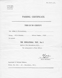 (AR03) Agnes and Lance Rutherford (AR04) Passing Certificate - Education Test 1 for Advancement to Petty Officer (AR05) Portrait of Petty Officer Lance Rutherford (AR06) PO A.L. Rutherford is mentioned the press release below as part of the burial party for the burial at sea of PO Joseph Dumont
