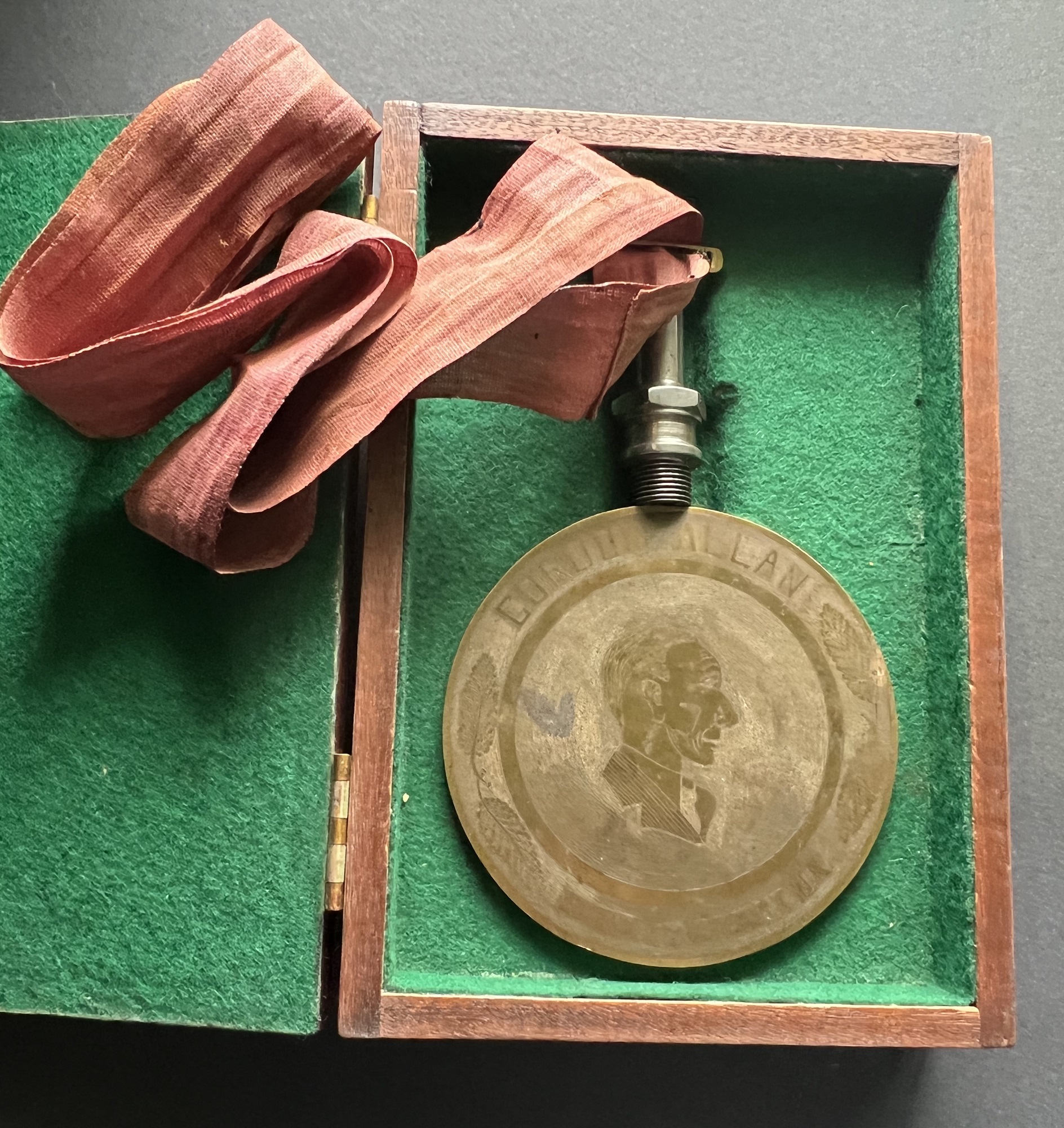 The above medal was presented to Lt (E) Gordon Allan, RCNR for 31 months service at HMCS FORT RAMSAY.