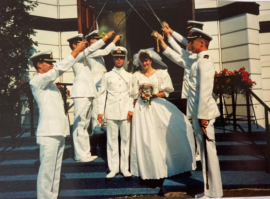 (JB03) Lt Ian Wood's wedding day with James Burrowes as part of the Sword party in the front left
