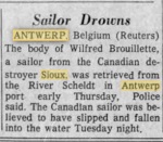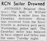 Newspaper articles on the death of AB Wilfred Brouillette Researched by / Courtesy of Renee Legg