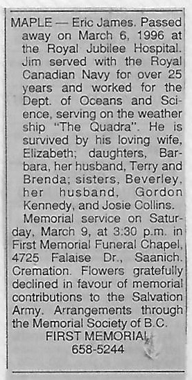 Died: 06 Mar 1996, Victoria, British Columbia