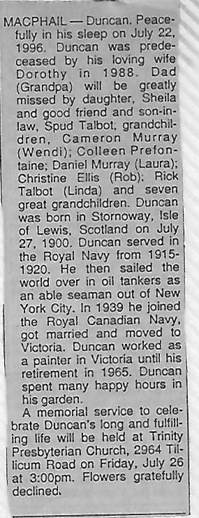 Served in the Royal Navy 16 Jul 1915 - 1920