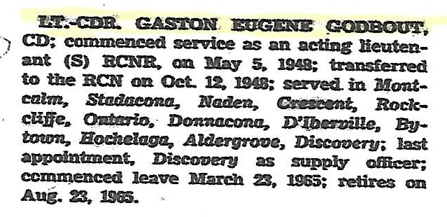 GODBOUT, Gaston Eugene - Born August 23, 1920 in Quebec City passed away peacefully November 27, 2006 at Mount St. Mary's Hospital, Victoria. Gaston will be lovingly remembered by his wife Rita of 36 years, his children, Daniel, Robert, Lise, Martin, Jerome and Colin. Predeceased by his son Patrick. (The Victoria Times Colonist 01 Dec 2006)