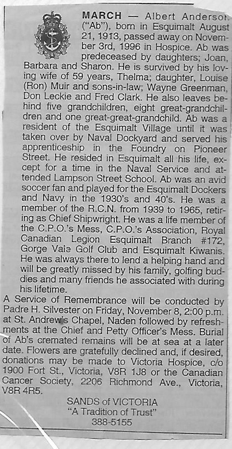 Died: 03 Nov 1996, Esquimalt, British Columbia