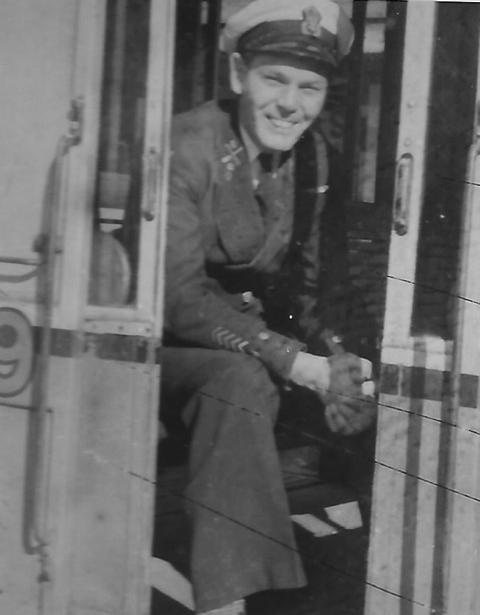 Don McCulloch on a tram in Sydney, Australia - 1945