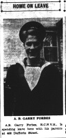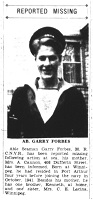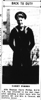 (GF05-GF06) Articles on AB Forbes home on leave and his return to duty  (GF07) Article on AB Forbes reported missing.  All three articles are from the Port Arthur New Chronicle.