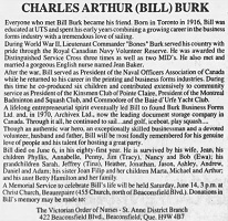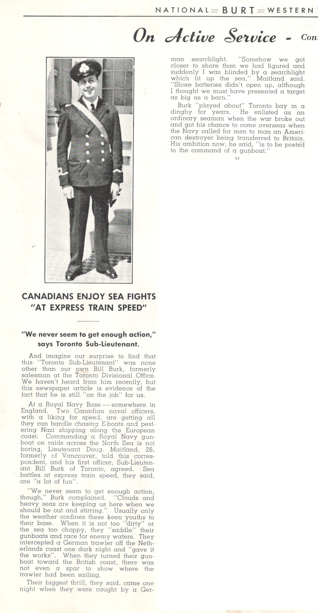 Citation for Second award of Mentioned in Despatches: BURK, Charles Arthur, Lieutenant, Mention in Despatches (Second), RCNVR - MTB-491 - Awarded as per Canada Gazette of 3 February 1945 and London Gazette of 30 January 1945. "For courage and determination in an attack on an enemy convoy while serving in Light Coastal Craft" (Action took place on 1 Nov 1944)."