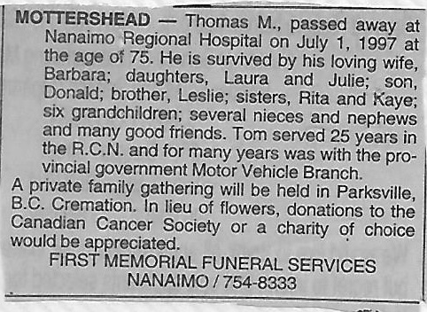 Born: 26 Oct 1921 Died: 01 Jul 1997