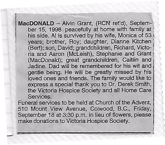 Died: 15 Sep 1998, Victoria, British Columbia